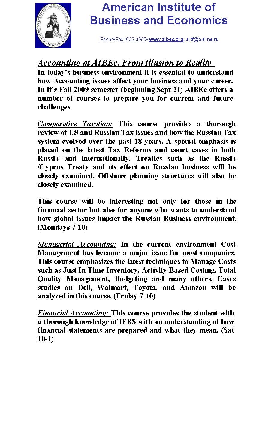 [Aibec-l] Fw: Accounting at AIBEc Fall 2009