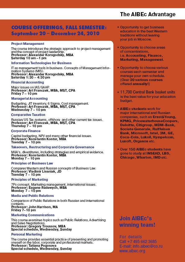 [Aibec-l] Fw: AIBEc's Fall 2010 Schedule Prepare for Russia's New